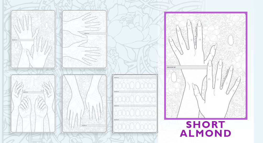 5 page Nail Art Template - Short Almonds - Your Username, no Watermark!
